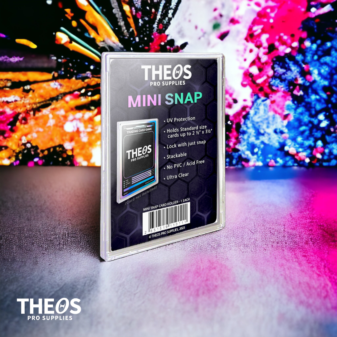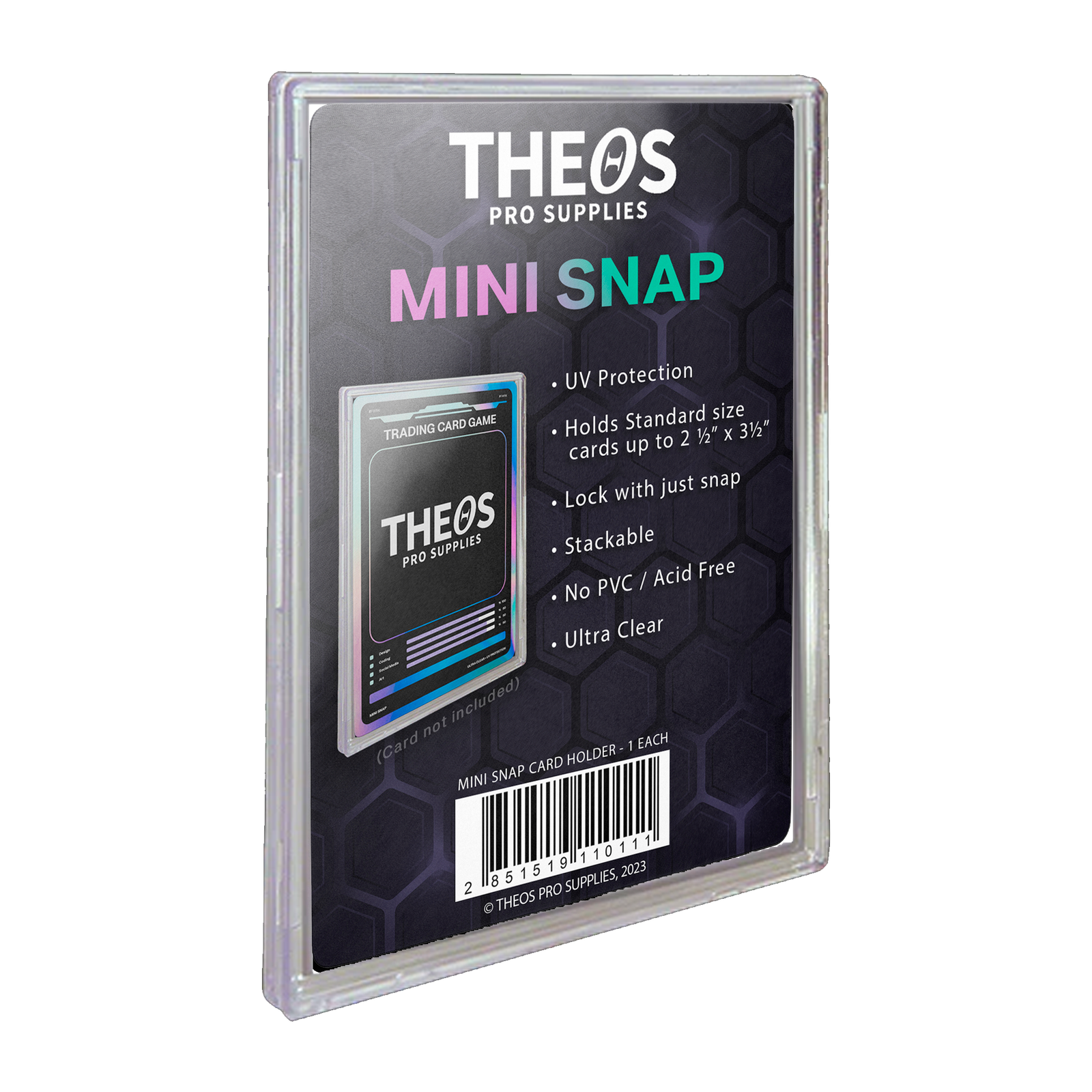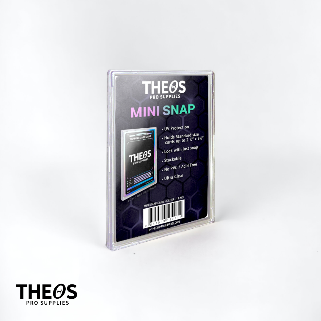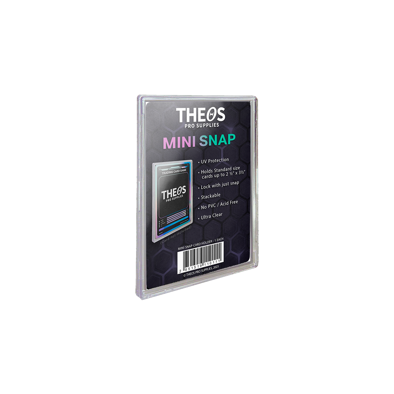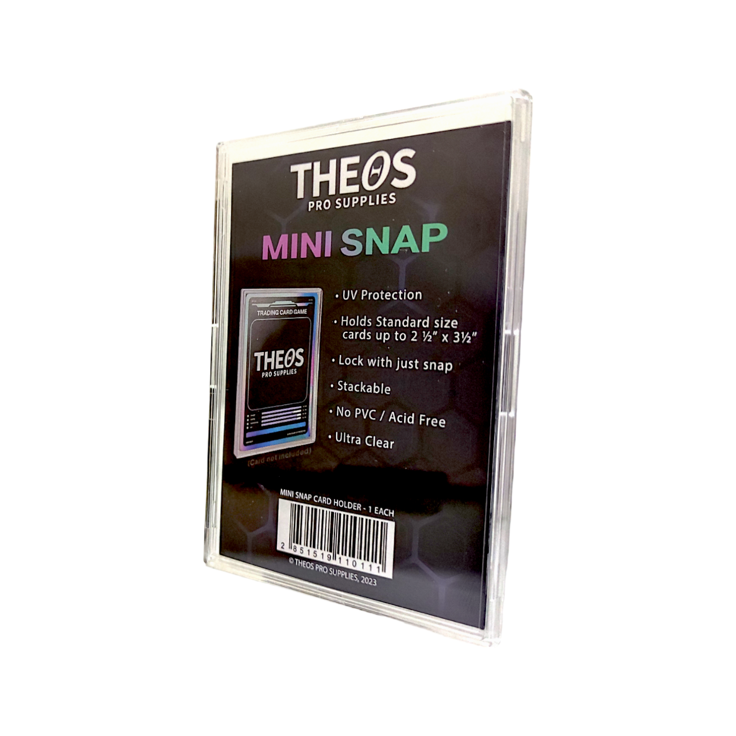 Showcase and protect your best cards with the THEOS Mini Snap. This premium hard case offers UV protection, archival-grade acid-free materials, and ultra-clear visibility. Features a secure snap-lock closure and a stackable design. The ultimate choice for single-card safety and display.