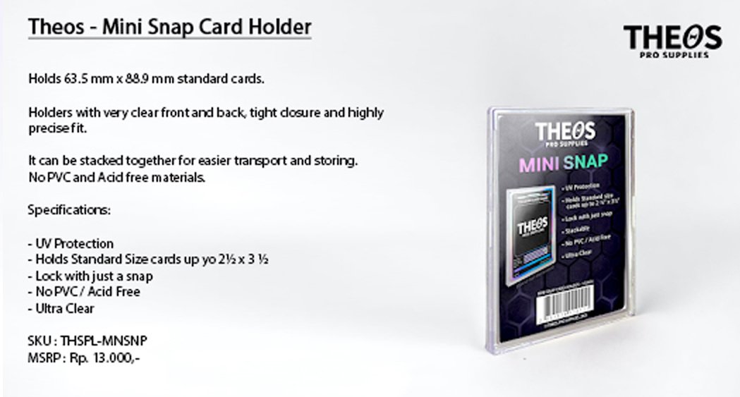 Give your most valuable cards the elite protection and crystal-clear presentation they deserve. The THEOS Mini Snap Card Holder is a precision-engineered hard case designed for the discerning collector who demands the absolute best. This holder provides a vault-like enclosure for your standard-sized TCG and sports cards, safeguarding them from damage while showcasing them in stunning clarity.